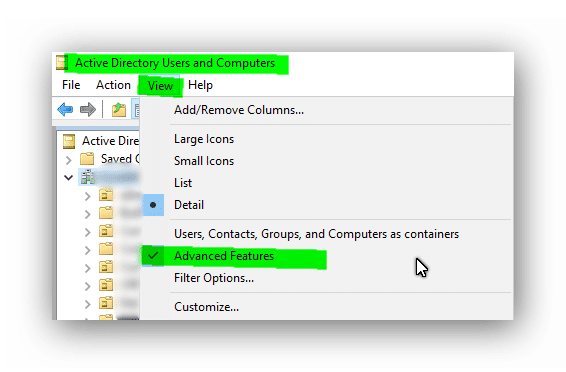 Bilgisayar hesaplarını temizlemek için yapılması gereken elbette ki ne kadar süredir kullanılmadığını kontrol etmek olacaktır. Bunun en kolay yolu, ortamdaki bilgisayar hesabının en son ne zaman oturum açtığını kontrol etmek olacaktır. Öncelikle bilgisayar hesabının en son ne zaman kullanıldığını görmek adına aşağıdaki şekilde Active Directory Users and Computers içerisinde “LastLogonDate” kısmından bakılmalıdır. Hemen detaylı anlatıma geçelim. Öncelikle aşağıdaki şekilde View kısmından Advanced Features seçeneğini aktif hale getiriyoruz.