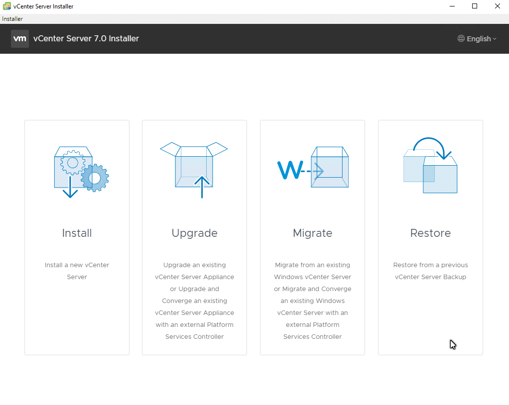 vCenter Server 7.0 Installer penceresi karşınıza gelecektir. Burada yapacağımız işlem vCenter sunucumuzun upgrade işlemi olduğundan Upgrade seçiyoruz.