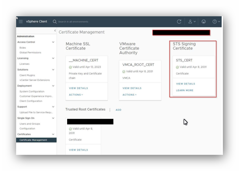 Checking Expiration of STS Certificate on vCenter Servers